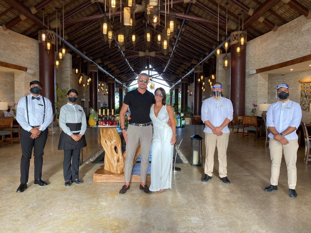 Según informó Lionel Gómez, gerente general de Secrets Cap Cana, los huéspedes fueron recibidos en la entrada del hotel con champagne y música en vivo, donde inmediatamente se realizaron una serie de procedimientos de seguridad, que incluyeron higienización de maletas y toma de temperatura.