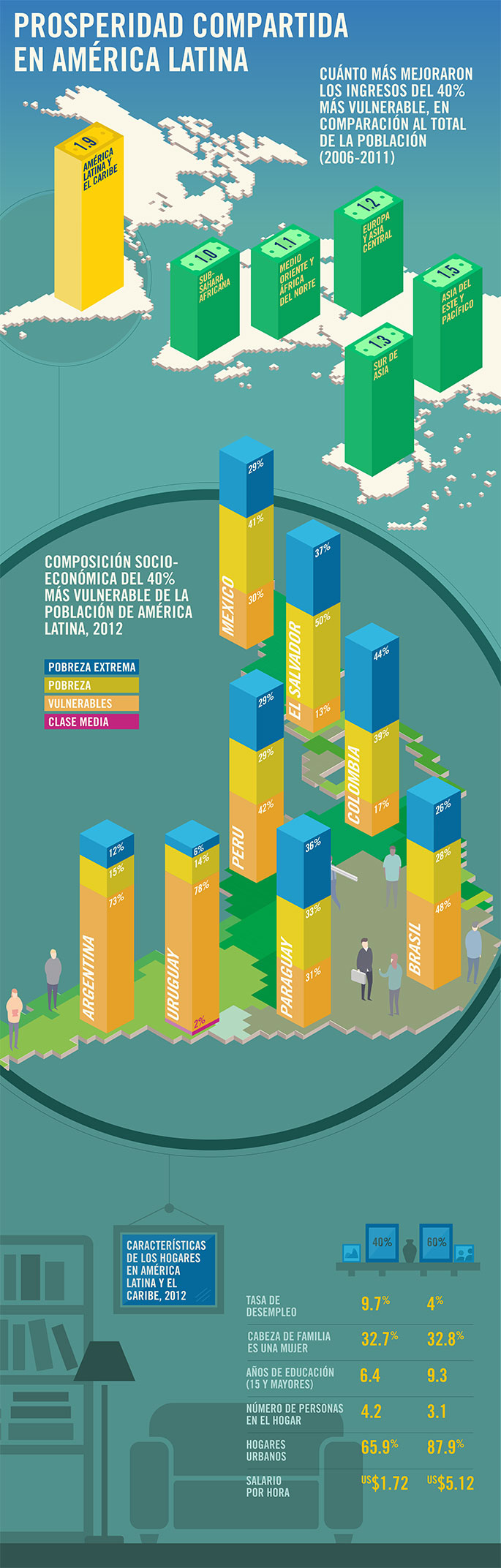 Las ganancias del Perú fueron parte de las de América Latina y el Caribe que como región en su conjunto estuvo al frente del mundo en desarrollo en términos de logros en prosperidad compartida, siendo testigo de un éxito sorprendente en cuanto a reducción de la pobreza, impulsado por el crecimiento, los ingresos laborales y redes de protección social efectivas.