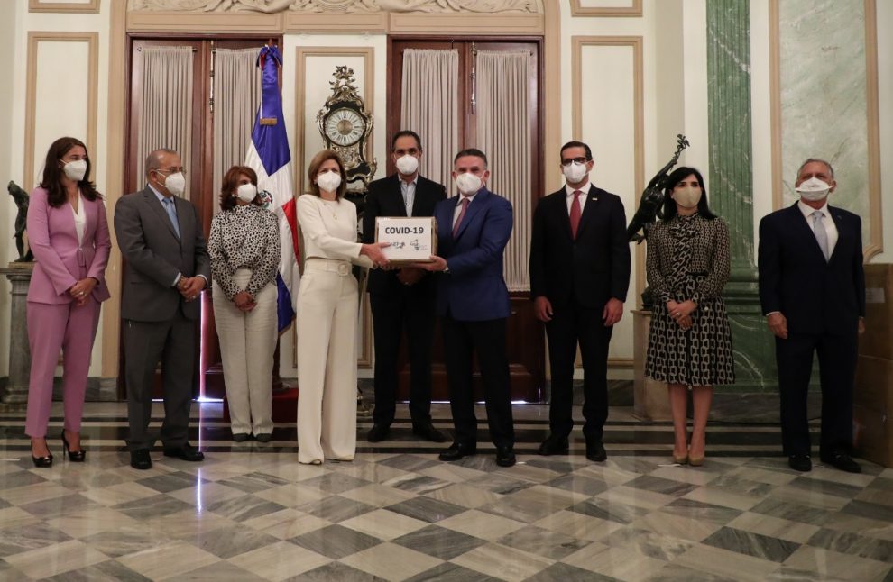 El Gabinete de Salud, encabezado por la vicepresidenta de la República, Raquel Peña, recibió insumos de protección sanitarios de parte del Consejo Nacional de la Empresa Privada (Conep), a través de la alianza empresarial Sanar una Nación, como un aporte para la mitigación, prevención y contención del covid-19 en República Dominicana.