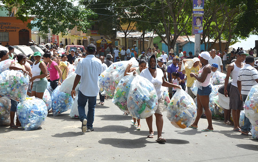 El canje es todo un evento: cada viernes la calle Primera del sector La Javilla de El Dique, en Santo Domingo Este, se llena de personas que reciclan para comer, a la vez que contribuyen con la transformación social y económica de su entorno, en las márgenes del río Ozama.