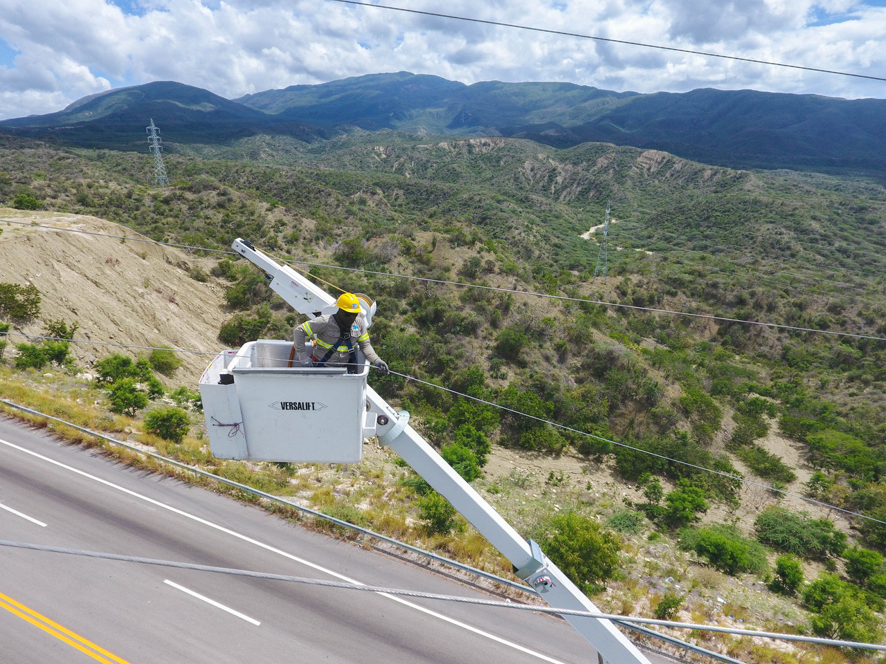 Brigadas de la ETED realizan trabajos de mantenimiento en líneas de transmisión para mejorar la estabilidad del servicio eléctrico nacional.