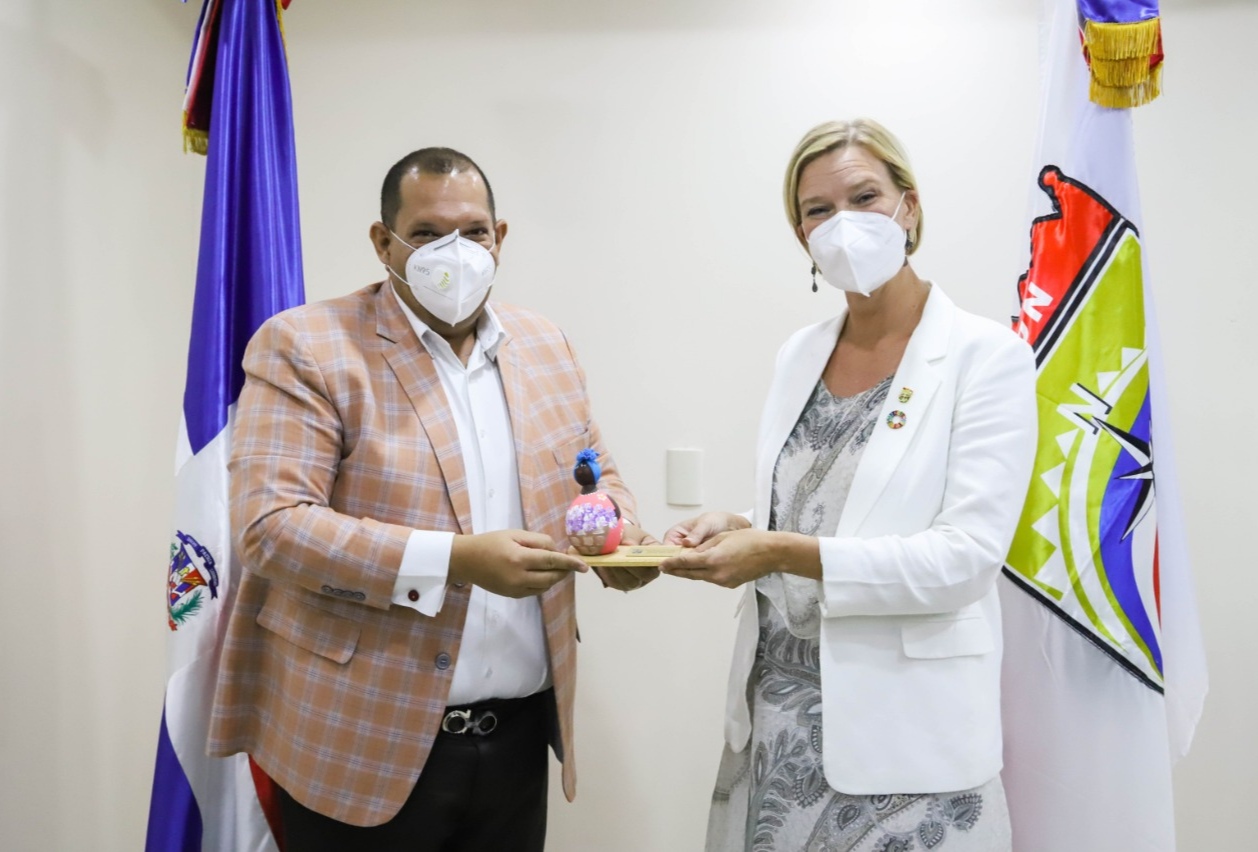 El alcalde de Santo Domingo Norte, Carlos Guzmán, y la representante de Programa de las Naciones Unidas para el Desarrollo (PNUD) en la República Dominicana, Inka Mattila, sostuvieron un encuentro para analizar las políticas públicas implementadas por el ayuntamiento en materia medioambiental, seguridad ciudadana, violencia de género, reordenamiento territorial, desarrollo incluyente y sostenible, y de este modo, coordinar acciones conjunta en el municipio.
