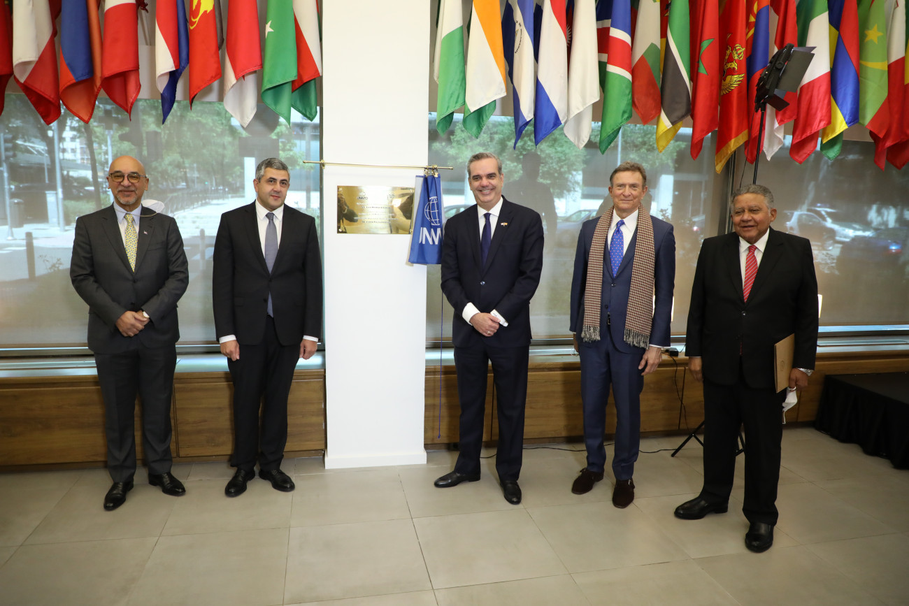 Al finalizar el encuentro, el gobernante develizó una tarja, junto al escudo dominicano, lo que registra la visita del mandatario a la sede de la Organización Mundial del Turismo, en fecha 18 de abril de 2021.