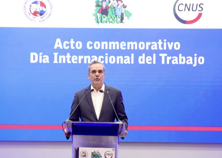 Dirigentes de las principales centrales sindicales del país celebraron junto a Abinader un acto con motivo del Día Internacional de los Trabajadores.