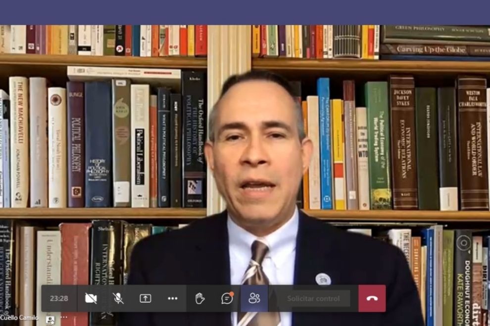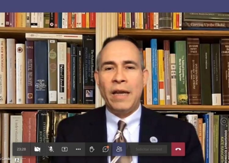 “Esto es algo que debemos saludar y agradecer a la comunidad de nuestra diáspora que se ha portado de una manera tan generosa con los suyos, que la han pasado realmente muy mal en esta pandemia”, expresó el conferencista durante la disertación “Economía post covid y los retos de República Dominicana”.