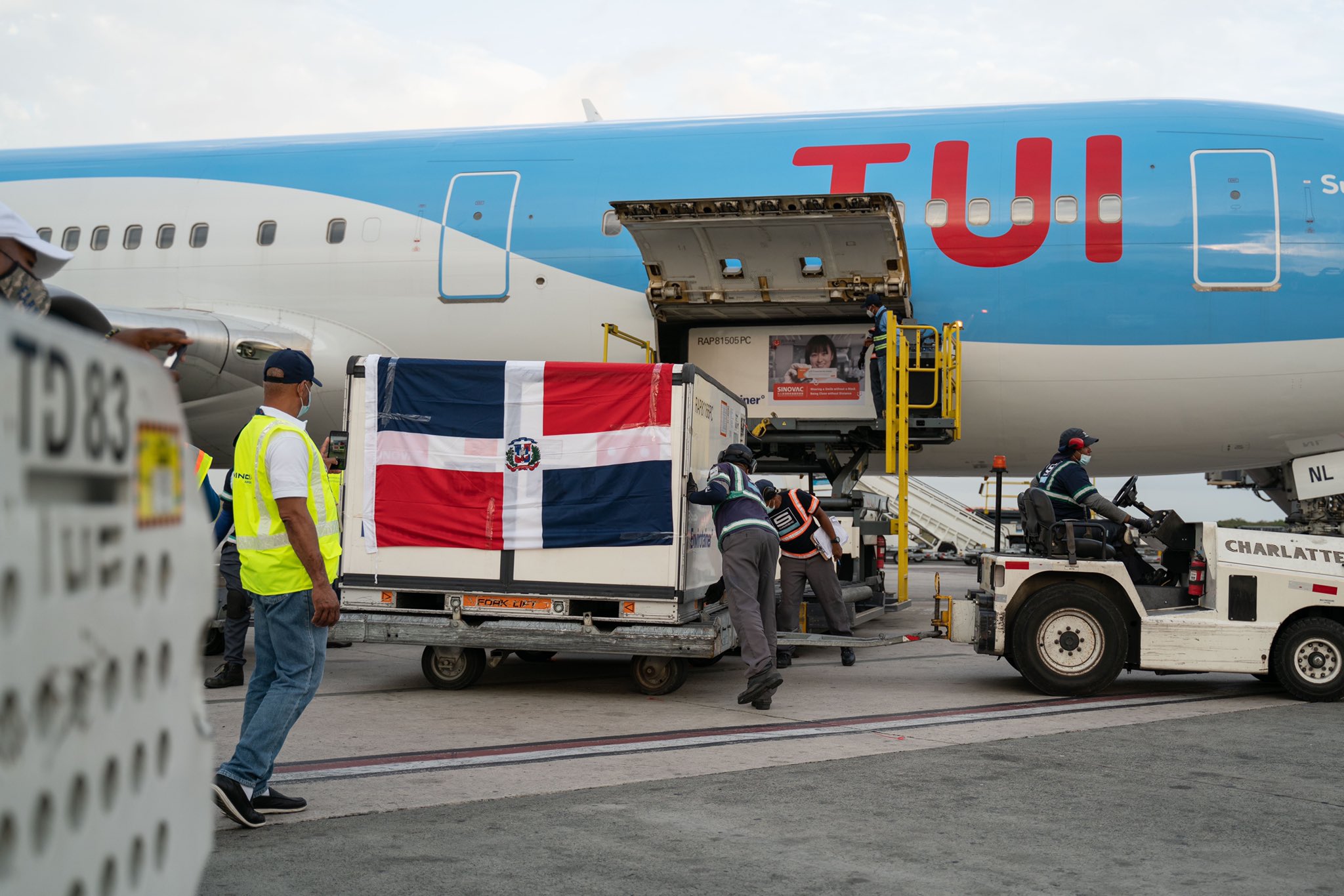 Las autoridades recibieron este martes un millón de dosis de la vacuna china Sinovac y tres millones de jerinquillas para continuar con el plan nacional de vacunación que incluye a todas las personas mayores de 18 años.