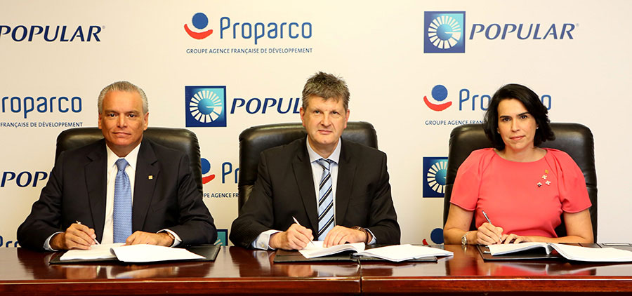 El acuerdo fue suscrito en la Torre Popular por Luis Espínola, vicepresidente ejecutivo de Negocios Internacionales y Banca Privada; y María Angélica Haza, vicepresidente de Área de Tesorería y Mercado de Capitales, en representación del Banco Popular; y Gilles Genre-Grandpierre, director regional de la Agencia Francesa de Desarrollo (AFD) y su filial Proparco en República Dominicana.
