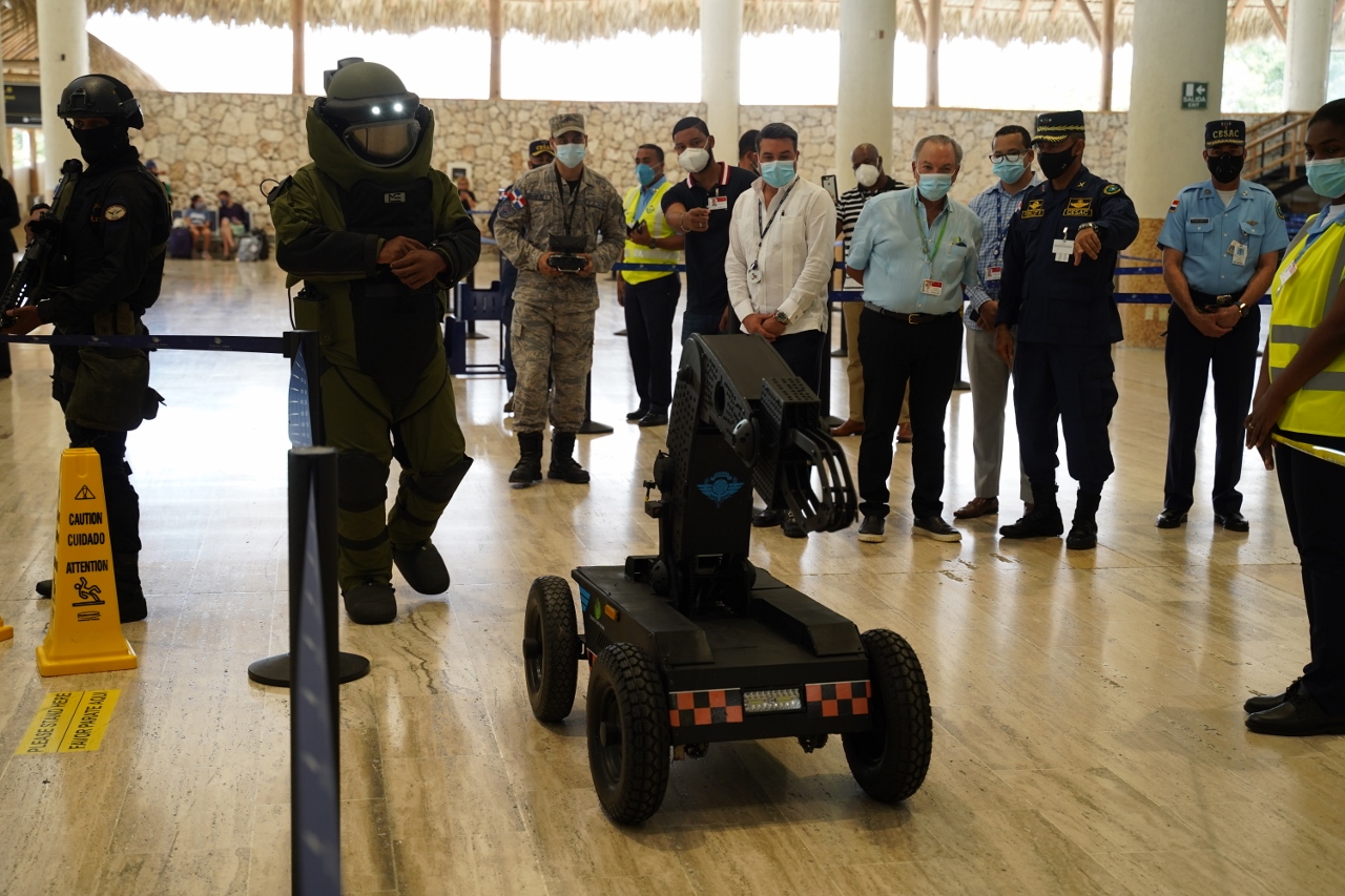 El Cuerpo Especializado en Seguridad Aeroportuaria y Aviación Civil (Cesac) y el Aeropuerto Internacional de Punta Cana (PUJ) realizaron el primer simulacro a escala real de detección y detonación de explosivos con asistencia de un robot en República Dominicana.