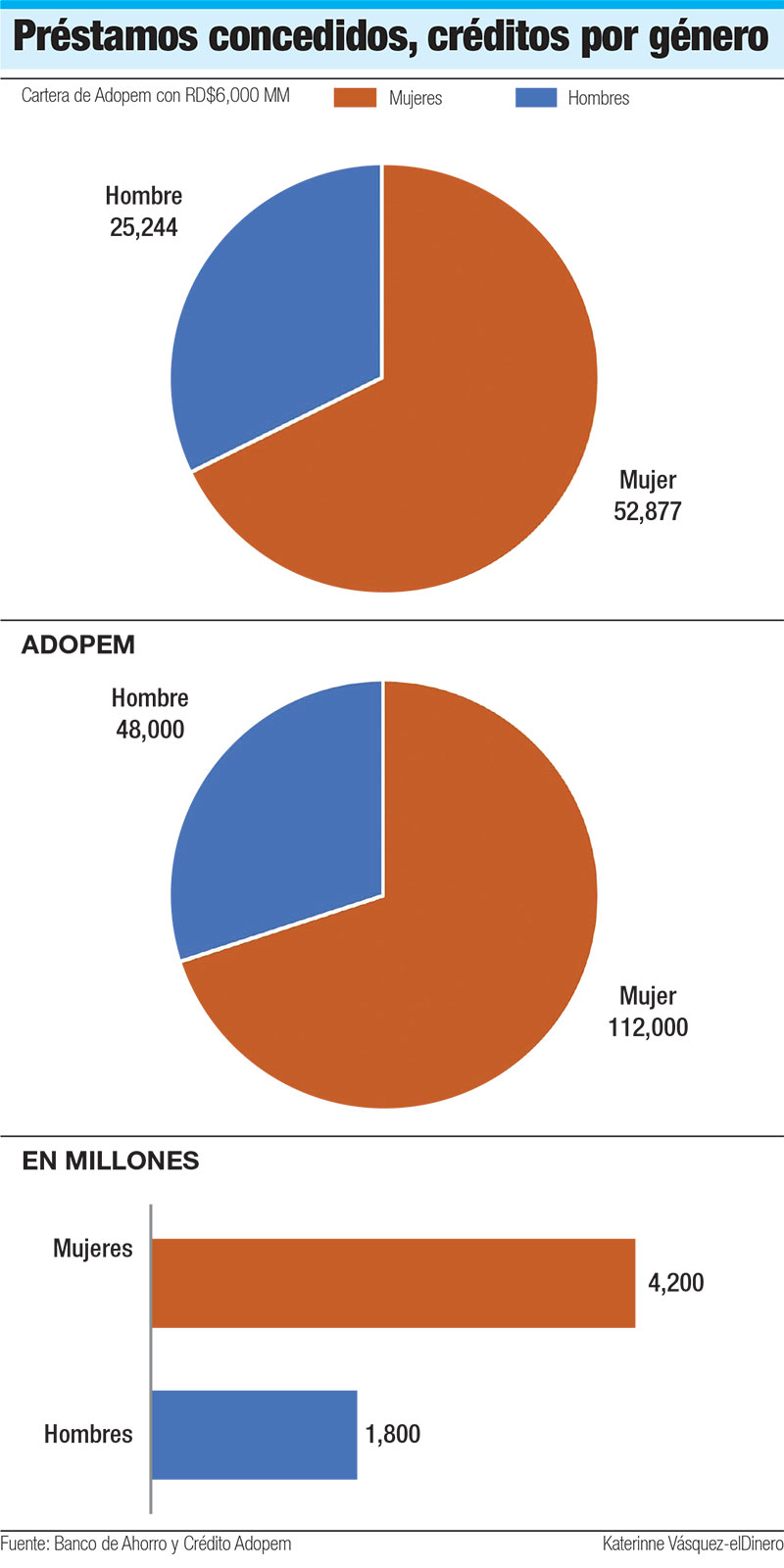 La cartera de crédito de Adopem asciende a RD$6,000 millones, de los cuales RD$4,200 millones son adquiridos por mujeres emprendedoras y otros RD$1,800 a hombres dueños de pequeños negocios.