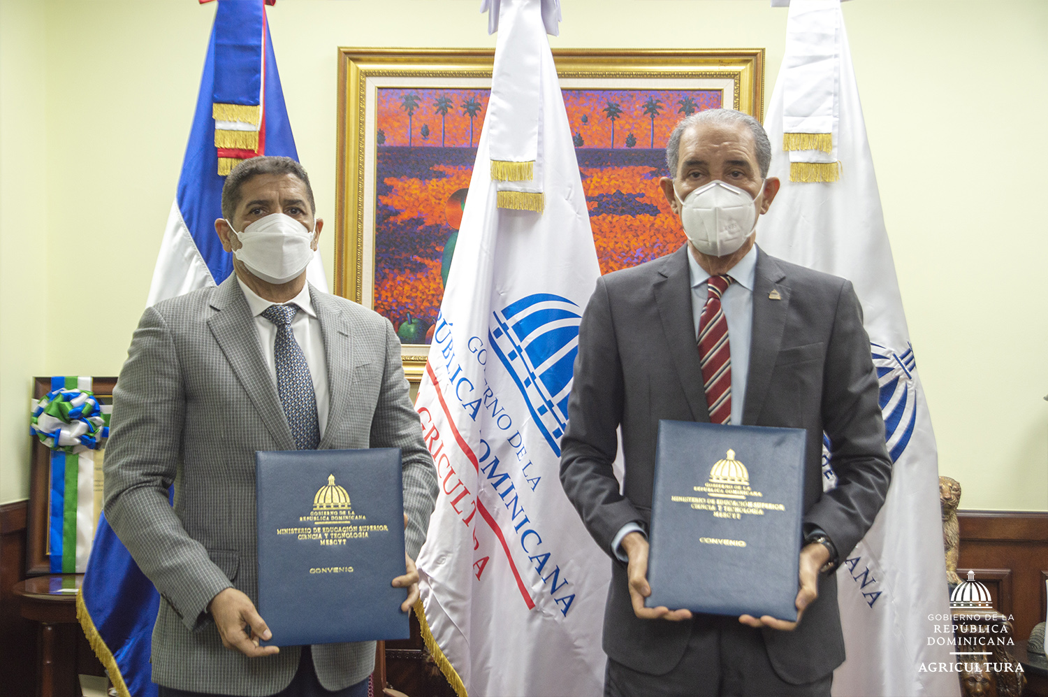 Mediante convenio rubricado por los ministros Limber Cruz, de Agricultura, y Franklin García, del MESCyT, se estableció que el personal del sector agrícola y pecuario podrá aplicar para másteres, doctorados, cursos de grado, postgrado y técnicos, con lo que el presidente de la República, Luis Abinader, honra su compromiso de fortalecer las capacidades profesionales de quienes contribuyen a garantizar la seguridad alimentaria del país.