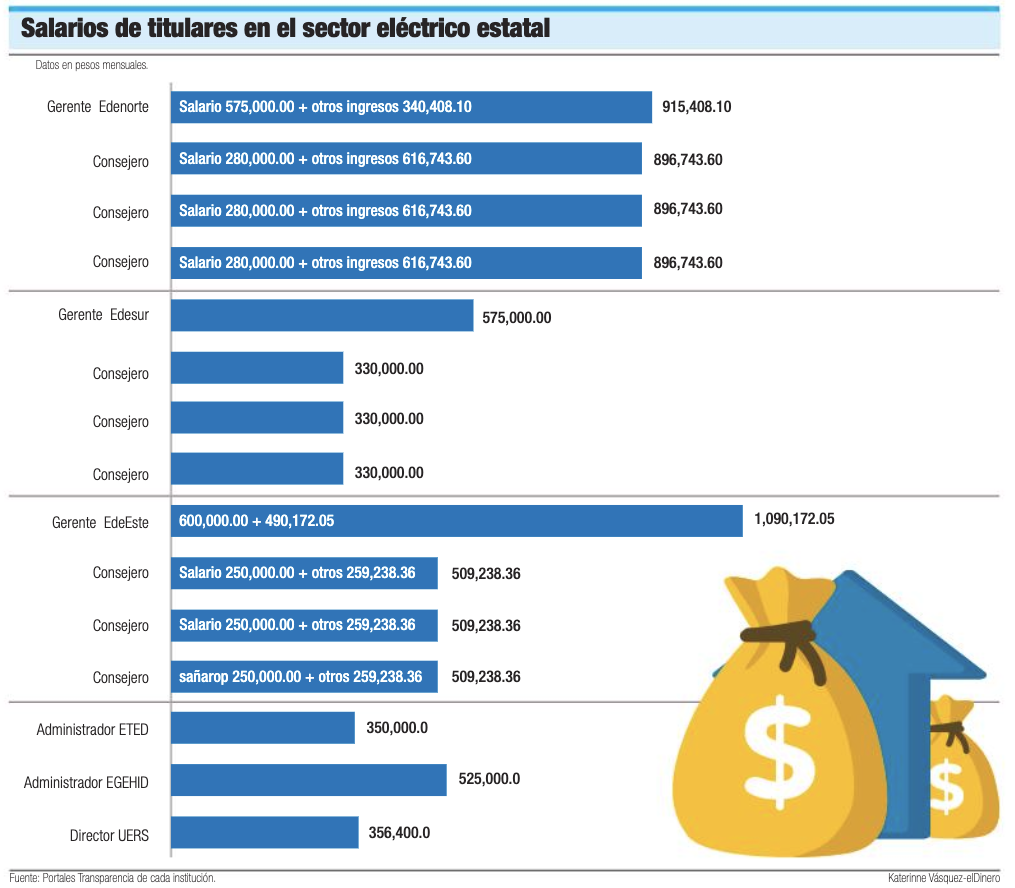 El administrador de la Empresa de Generación Hidroeléctrica (EGEHid) devenga un salario de RD$525,000, por lo que todos los titulares de empresas eléctricas estatales tienen sueldos diferentes.