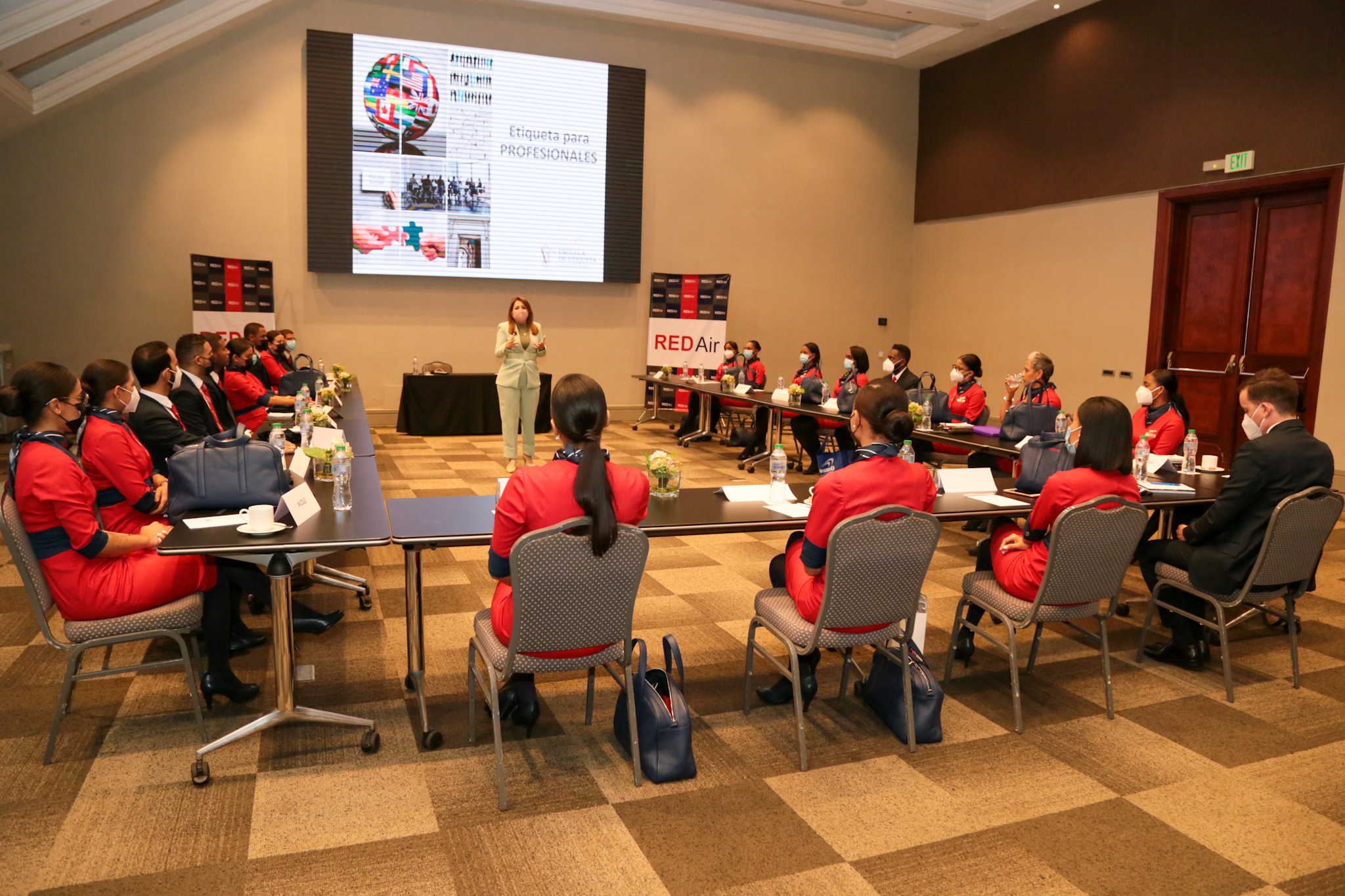 Un total de 23 tripulantes de cabina recibieron formación en materia de protocolos de seguridad e higiene ante el covid-19, como parte de las capacitaciones que la aerolínea RED Air está realizando a sus colaboradores antes del inicio de sus vuelos.