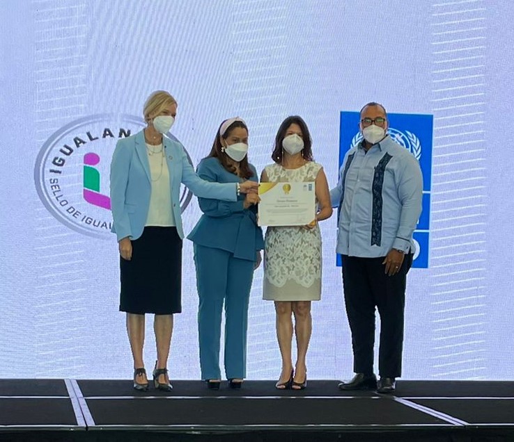 El Sello Oro Igualando RD, que por segunda año consecutivo recibe la organización, es otorgado por el Programa de las Naciones Unidas para el Desarrollo (PNUD), el Ministerio de la Mujer y el Instituto Dominicano de la Calidad (Indocal). Esta importante certificación valida las buenas prácticas de Humano en materia de igualdad de oportunidades laborales tanto para mujeres como para hombres, que en la actualidad tiene una participación femenina de un 55% y masculina de un 45% en su estructura organizacional.