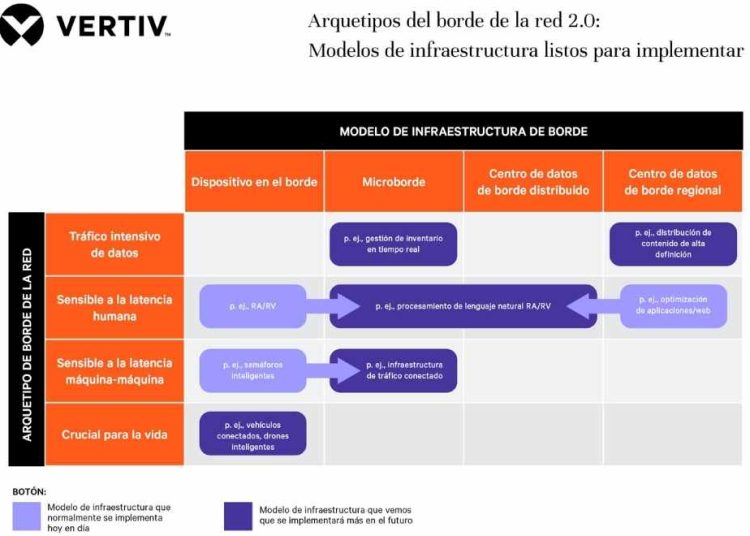 La introducción de los arquetipos del borde hace tres años contribuyó con una mejor comprensión del borde de la red. Se trató del primer intento formal —con el uso de información recogida en toda la industria— para agrupar las aplicaciones en el borde de la red de una manera que ayudara a las organizaciones a evitar descubrir el agua tibia con cada implementación en el borde. Desde entonces, otras organizaciones e industrias han estado trabajando de forma paralela —algunas veces con la colaboración de Vertiv— para crear tecnologías y procesos estándar para mejorar la comprensión y la efectividad del borde de la red. Estos modelos de infraestructura de borde representan el siguiente paso lógico.