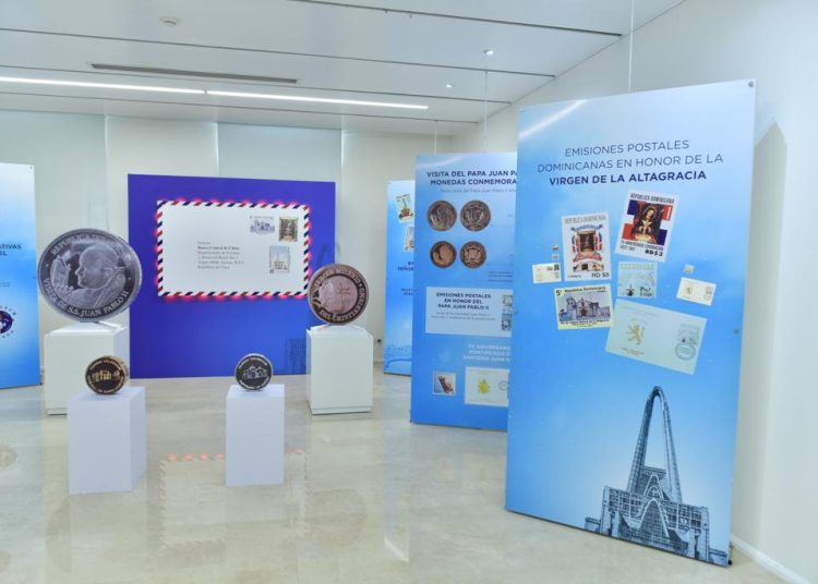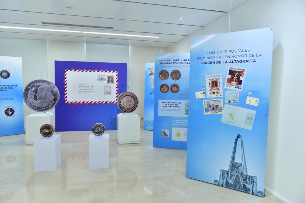 En esta actividad, organizada por el Departamento Cultural del BCRD, se muestran, entre otras piezas destacadas de la numismática y filatelia dominicanas, monedas que evocan la primera visita al país del Papa Juan Pablo II en 1979, así como la serie Tercer Milenio del Cristianismo y de las Iglesias Coloniales, ambas con diseños aprobados por el cardenal Nicolás de Jesús López Rodríguez. Estas monedas aparecen junto al billete de 50 pesos dominicanos con la efigie de la Basílica de Higüey en su reverso.