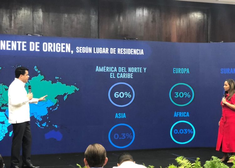 La viceministra Jaqueline Mora explicó que de los no residentes que visitaron el país unos 474,000 eran extranjeros y 92,000 dominicanos y que la distribución continental de los turistas extranjeros corresponde a un 60% de Norteamérica, 30% de Europa, 9% de América Latina y un 1% del resto del mundo.