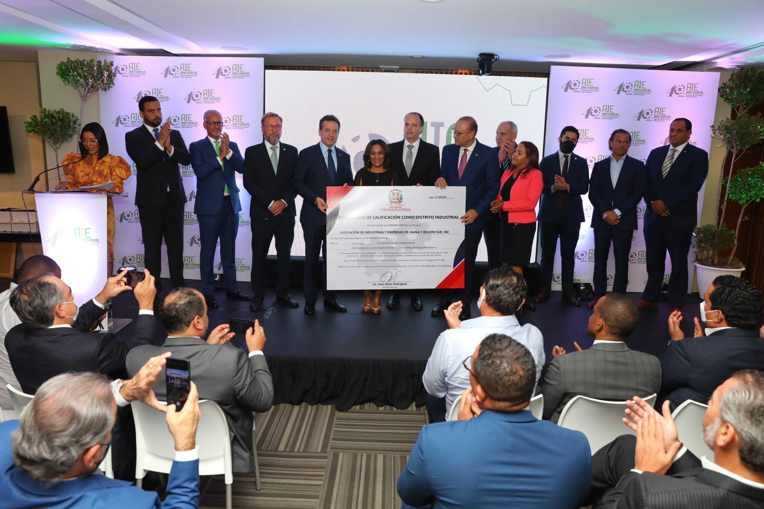 La certificación fue entregada durante el acto de celebración del 40 aniversario de la Asociación de Industrias y Empresas de Haina y Región Sur (AIE Haina y Región Sur).