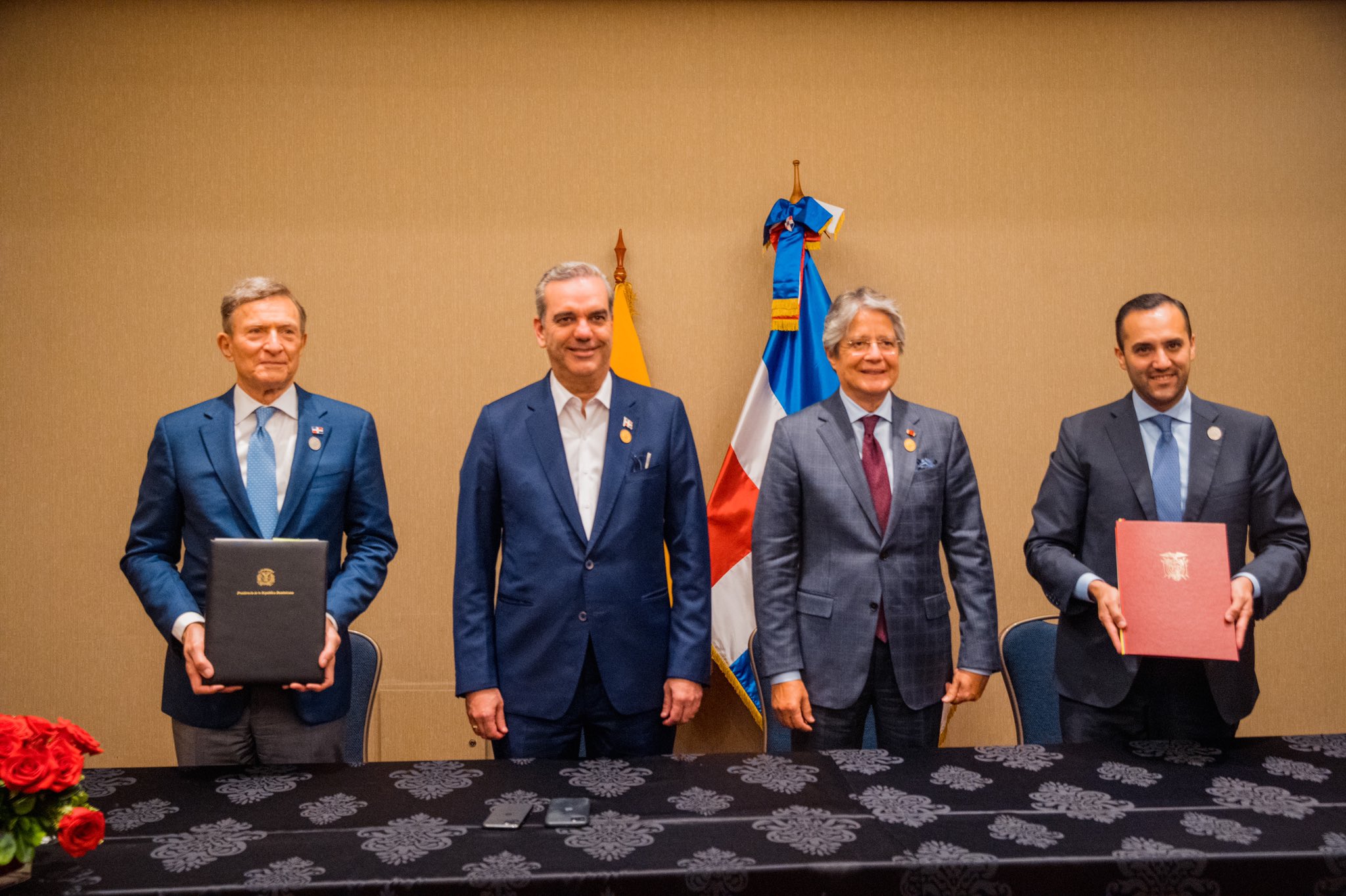 El presidente Luis Abinader y su homólogo de Ecuador, Guillermo Lasso, presenciaron en Santiago de Chile la firma de un acuerdo de cooperación aérea con el objetivo de mejorar el comercio y el crecimiento económico de ambos países.