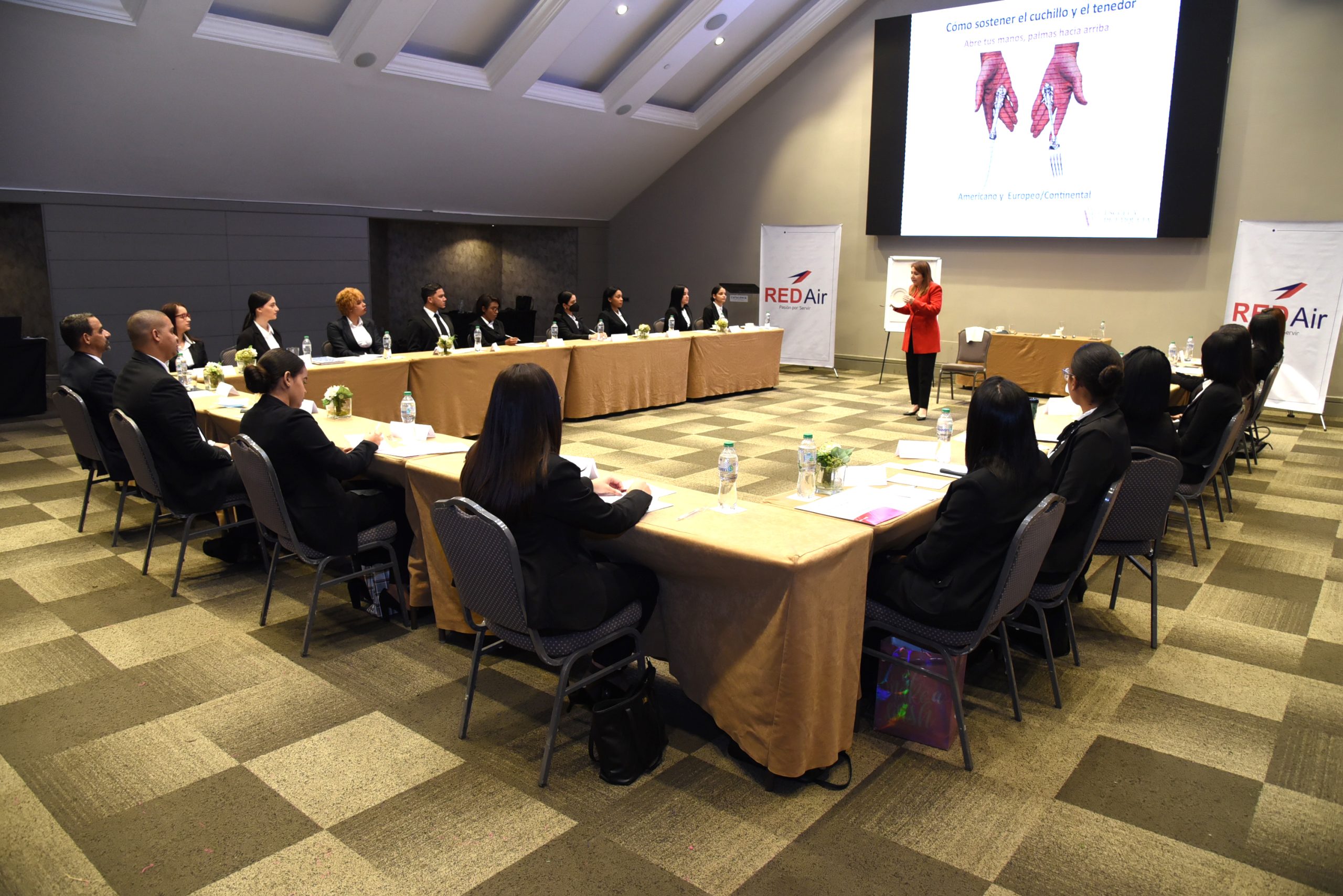 Un total de 22 tripulantes de cabina recibieron formación en materia de protocolos de etiqueta e imagen corporativa, como parte de las capacitaciones que la aerolínea RED Air realiza a sus colaboradores antes de comenzar sus operaciones.