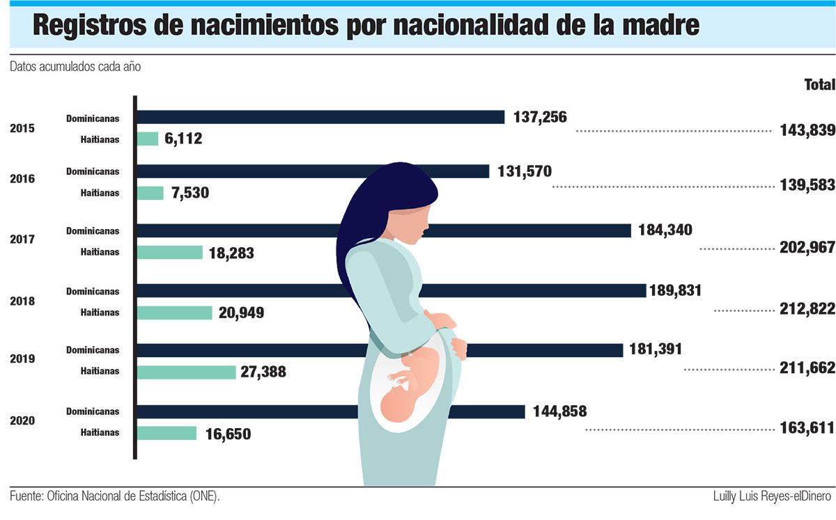 En tanto que, también en 2020, Salud Pública registró 18,833 partos de madres haitianas. Ese mismo año hubo 7,530 registros de nacimientos de hijos de haitianas en las oficialías de Estado Civil, es decir, 60% menos de los nacimientos.