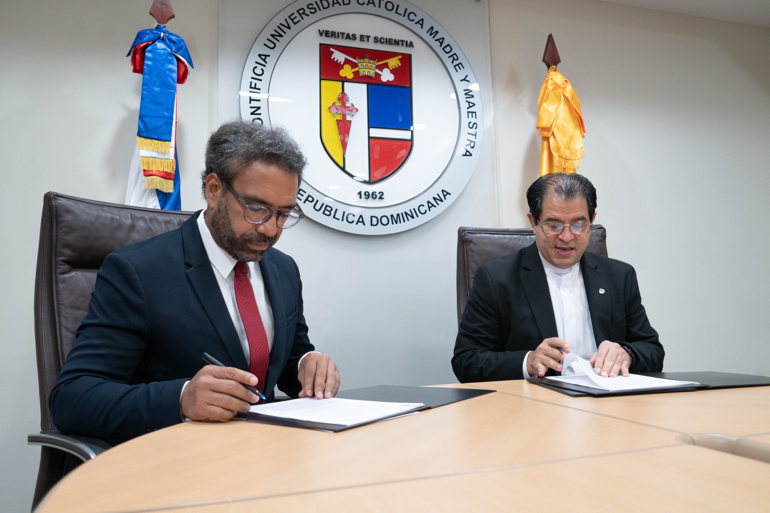 En un acto encabezado por el reverendo padre Dr. Secilio Espinal, rector de la universidad, acompañado por el Dr. David Álvarez, vicerrector académico; la Dra. Iluminada Severino, vicerrectora de Administración y Finanzas; el Dr. Juan Gabriel Faxas, vicerrector de Estrategia e Innovación; la Dra. Ana Bélgica Güichardo, directora de la Escuela de Comunicación, y el profesor Félix Manuel Lora; junto con Nelsón Jiménez Cabrera en su condición de director gerente de la entidad, fueron firmados los documentos correspondientes y dichas las palabras de rigor ante el evento académico.