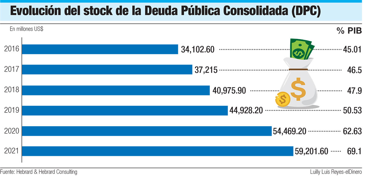Estos resultados fijan la DPC en 67.3% del producto interno bruto (PIB), para un un incremento de 6.68 puntos porcentuales, que no es mayor debido al crecimiento de la economía y no a una reducción del monto, que sigue siendo “demasiado alto”, si se toma en cuenta que, al cierre del 2021, representaba 62.6% del PIB. En otras palabras, en solo dos meses del 2022, la deuda aumentó 4.71 puntos porcentuales del PIB.