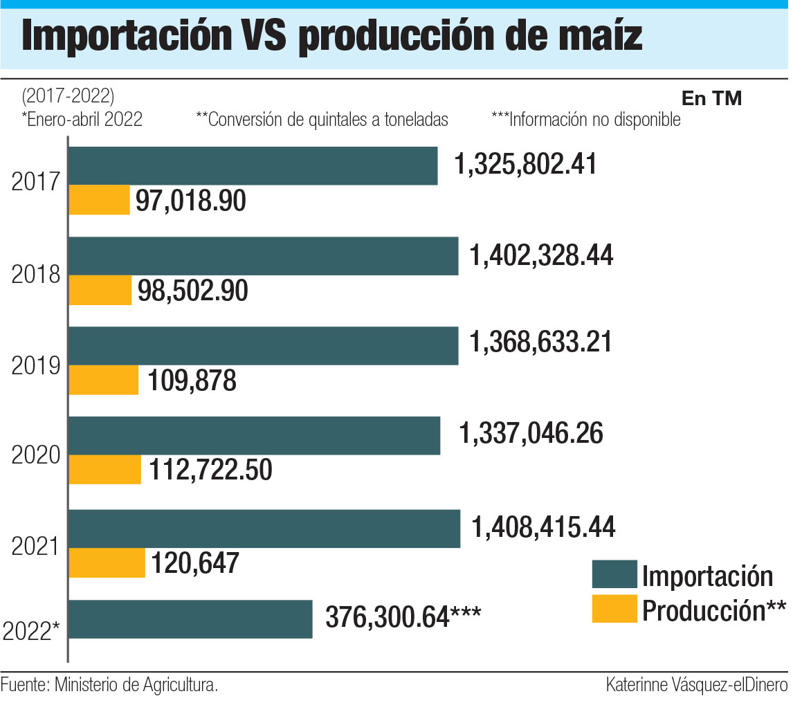 El presidente de la Confederación Nacional de Productores Agropecuarios (Confenagro), Wilfredo Cabrera, sostuvo que uno de los factores que limita la producción local de maíz es la falta de más superficies dedicadas a este rubro, así como la mecanización de la mano de obra, para hacer este rubro más competitivo.