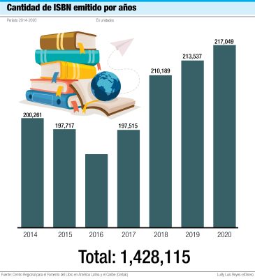 El Número Internacional Estándar de Libros (ISBN, siglas en inglés) identifica cada obra literaria y revela parte del desempeño de la comercialización del libro formal, así como la demanda de lectoría. En el período 2014-2020, en la región se otorgaron 1,428,115 códigos únicos, de los cuales República Dominicana reportó 11,486. Esto representa apenas un 0.8%.