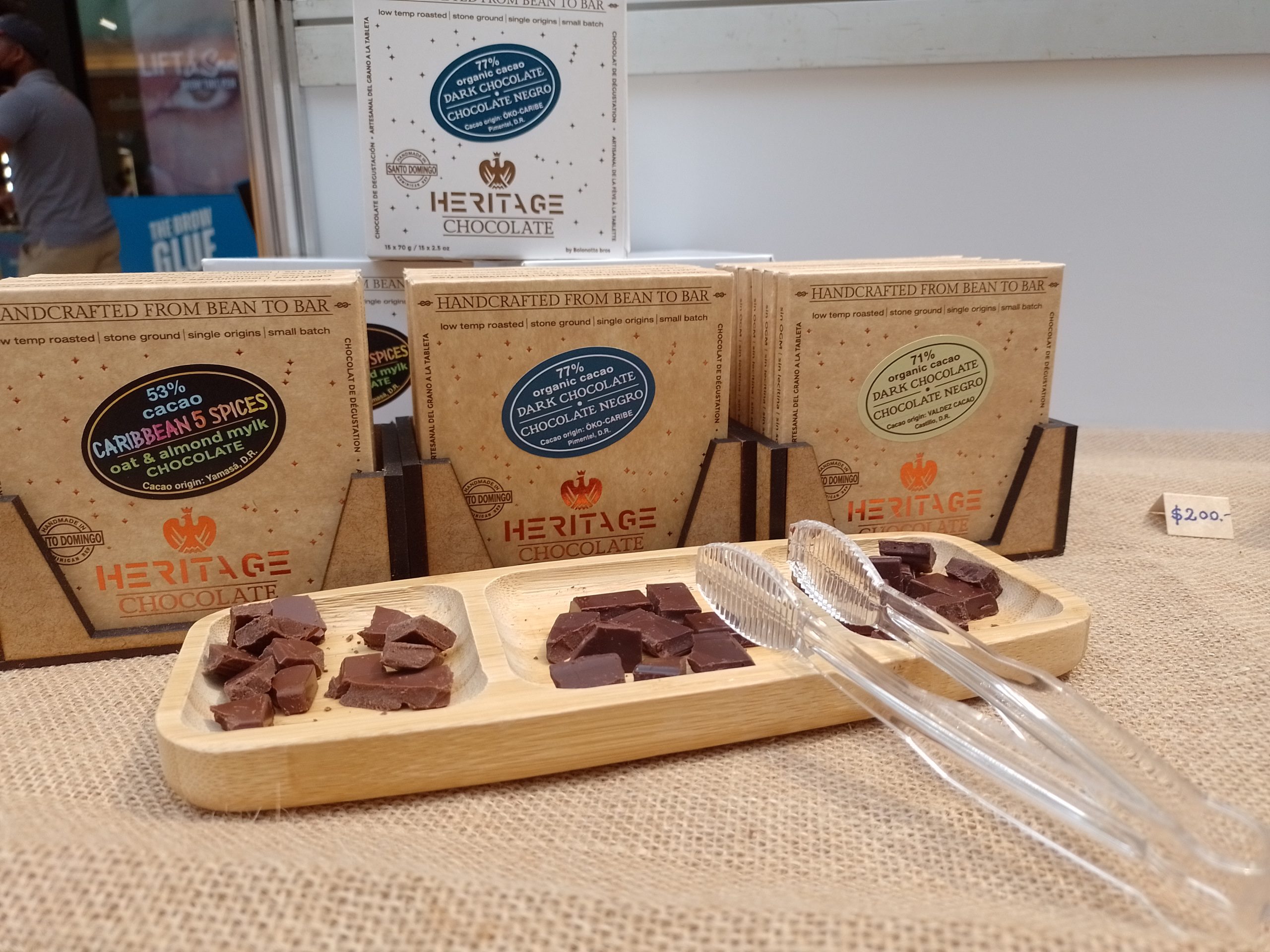 El olor a chocolate inunda las fosas nasales de los invitados, quienes se abarrotan entre los diferentes puestos a degustar las barras de chocolate dominicano.