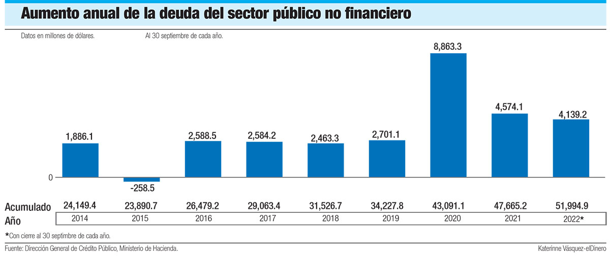 Pero en términos absolutos, la deuda del SPNF va en constante aumento. De hecho, en los últimos dos años y medio ha aumentado en más de US$17,000 millones, de acuerdo con estadísticas de la Dirección General de Crédito Público del Ministerio de Hacienda.