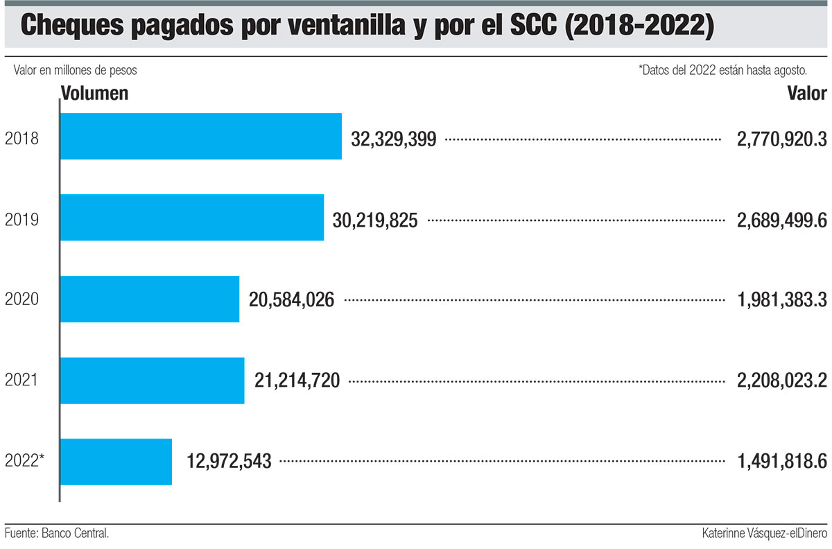 En 2019, año prepandemia, el volumen de cheques pagados ascendió a 30.2 millones por valor de RD$2,689,499.6 millones, según datos del Banco Central.