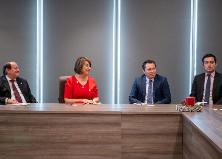 La presidenta de la ABA, Rosanna Ruiz, recibió en la sede del gremio a la misión conformada por Diego Herrera, Jaime Sarmiento, Gabriel Jiménez y Manuel Jiménez, quienes se interesaron por escuchar el parecer de la asociación sobre aspectos regulatorios, indicadores bancarios, y de coyuntura económica nacional e internacional que influyen en el mercado de capitales en la República Dominicana.