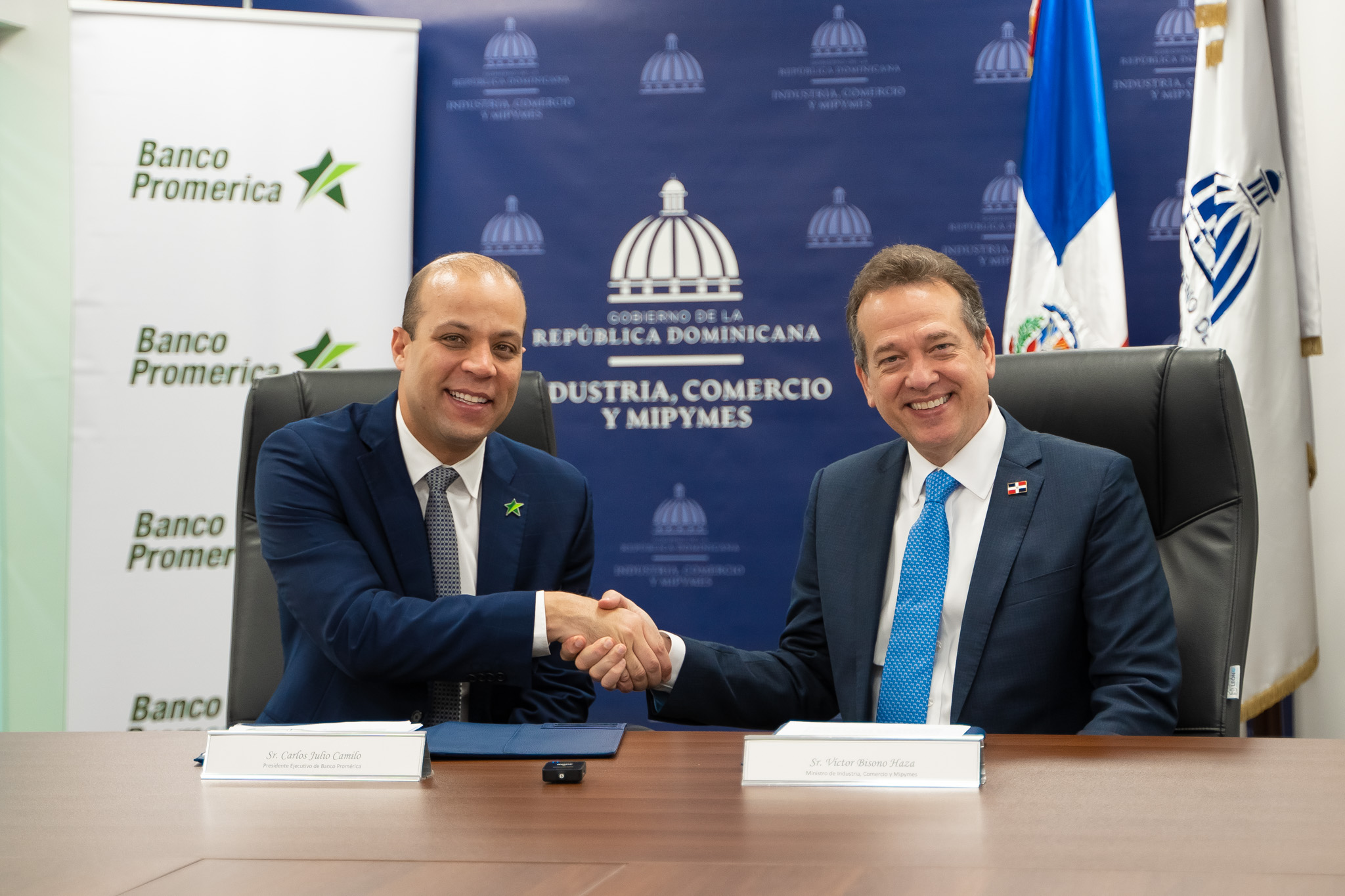 El acuerdo firmado por Víctor (Ito) Bisonó, ministro de Industria, Comercio y Mipymes (MICM) y Carlos Julio Camilo, presidente de Banco Promerica, contempla que quienes hayan obtenido la “Certificación de Clasificación Empresarial Mipymes Mujer” recibirán beneficios diferenciados por parte de Banco Promérica, a través de un amplio catálogo de productos y servicios adaptados a este segmento tan importante para la economía nacional.