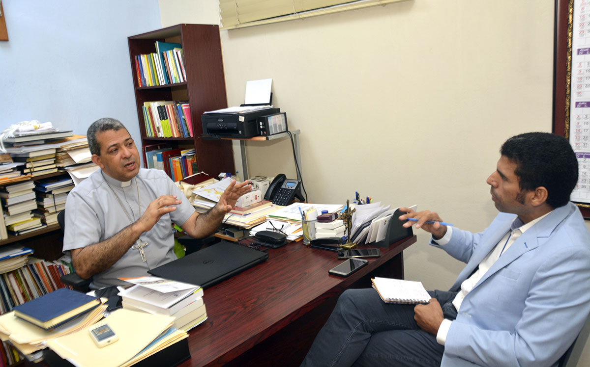 Carlos Tomás Morel Diplán, obispo auxiliar de Santiago y presidente del Seguro Sacerdotal, habla con Esteban Delgado, subdirector de elDinero, sobre el plan de pensiones. | Lésther Álvarez