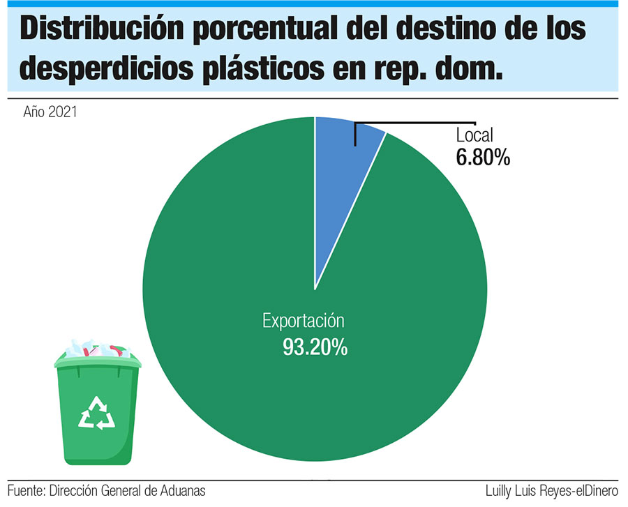 El reporte Global Plastics Outlook de la Organización para la Cooperación y el Desarrollo Económico (OCDE) informa que el mundo produce el doble de los residuos sólidos que hace dos décadas atrás. Aunque a diario se puede percibir una gran cantidad de desechos platicos en las calles dominicanas, en realidad, el país los exporta. De hecho, están clasificadas en la partida 3915 “desechos, desperdicios y recortes de plástico”.