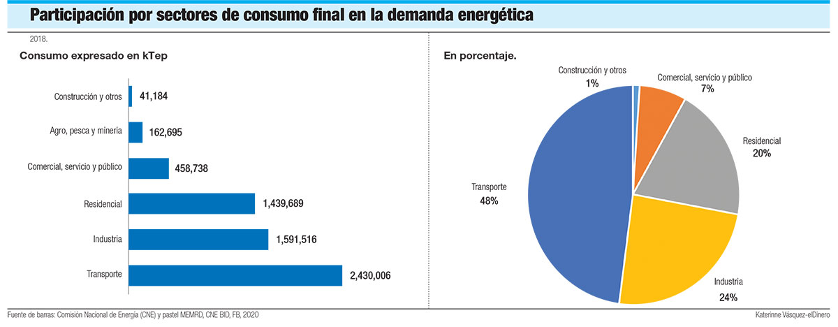 Un año antes fueron US$4,025.76 millones y medioambientalmente se tradujo en la emisión de 28 megatoneladas de dióxido de carbono (MtCO2) en República Dominicana, de acuerdo con el Global Carbon Atlas. Eso se explica en que el 84% de la energía que se produce depende de combustibles fósiles y para obtener un kilovatio-hora, las plantas de generación deben operar un proceso que genera emisiones de gases de efecto invernadero al medio ambiente, y aceleran el impacto del cambio climático.