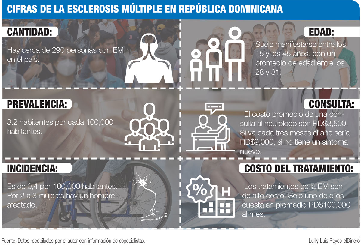 “Actualmente, nosotros tenemos aproximadamente nueve fármacos disponibles en el programa de medicamentos de alto costo, de más de 20 que existen a nivel internacional aprobados por la EMA y la FDA para tratar la esclerosis múltiple”, señaló Ramírez, al citar que sólo uno de ellos podría costar en promedio RD$100,000 al mes.