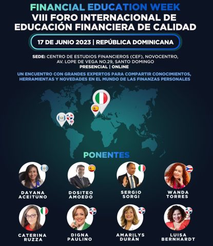 El Foro Internacional de Educación Financiera de Calidad llegará por primera vez a la República Dominicana en su octava edición, donde expertos en el área compartirán herramientas, modelos y novedades del mundo de las finanzas y su educación, con la finalidad de promover y fomentar el bienestar financiero en la población y a la vez aportar al crecimiento de la economía mundial.
