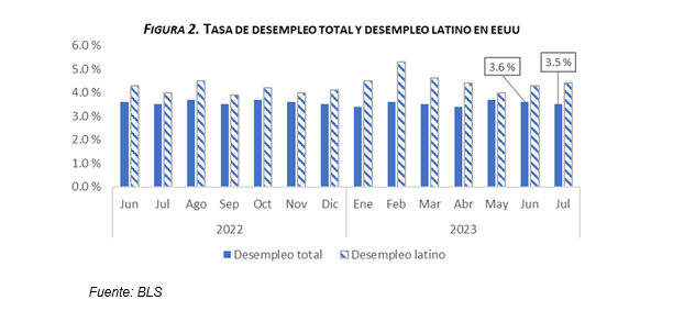 El BCRD explica que el desempeño económico de los Estados Unidos fue uno de los principales factores que incidió en el comportamiento de las remesas, ya que desde ese país provino el 82.6% de los flujos formales de julio, unos US$654.8 millones. Por un lado, el desempleo general del país norteamericano pasó de 3.6% en junio a en 3.5% en julio. Adicionalmente, el índice de gestores de compras (PMI por sus siglas en inglés) no manufacturero del Instituto de Gerencia y Abastecimiento (ISM por sus siglas en inglés) registró un valor de 52.7 en julio, indicando una sostenida expansión del sector servicios, donde se emplea la mayor parte de la diáspora dominicana.