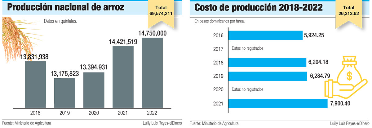 Un análisis de los resultados entre 2016 y 2021 establece que hubo un aumento de 4.7%. Respecto al año siguiente, el aumento solo reflejo un 1.3%, siendo el 2021 el de mayor incremento con un 25.7% (RD$7,900.40 por tarea). A pesar de no existir datos actualizados en Agricultura del 2022 y en lo que va del 2023, el presidente de la Federación Dominicana de Productores de Arroz (Fenarroz), Marcelo Reyes, asegura que ronda los RD$7,600 a RD$8,400 por tarea.