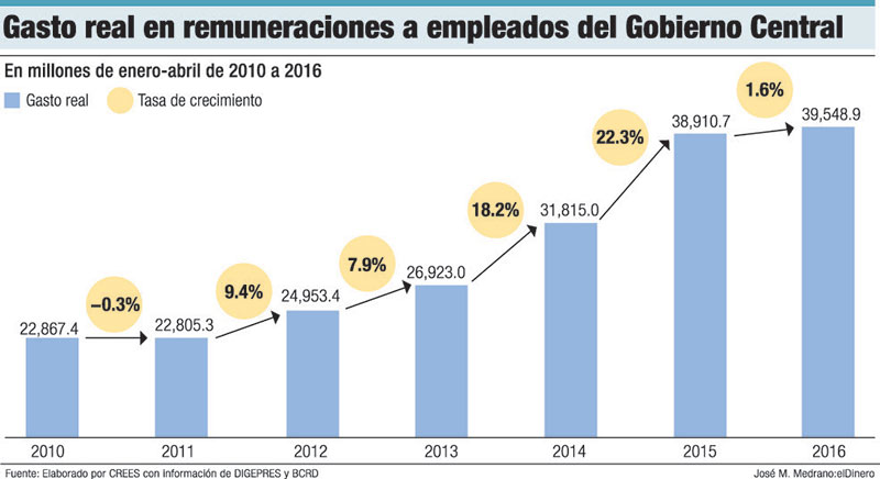 Sólo la debilidad de las instituciones y el incumplimiento de las leyes (en este caso podría decirse que por suerte) permiten al Gobierno disponer de los recursos para operar, aunque, por supuesto, siempre acudiendo al déficit, cuyo monto se estimó en RD$75,893.5 millones en 2016, equivalentes a un 2.3% del producto interno bruto (PIB).
