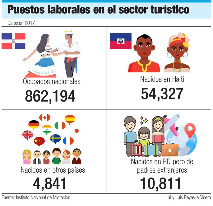 El estudio “Mercado laboral y mano de obra extranjera en el sector turismo en República Dominicana” señala que el 18.3% de los migrantes haitianos ocupados brinda sus servicios a la actividad de hoteles, bares y restaurantes por su conocimiento de varios idiomas. Es decir, 54,327.