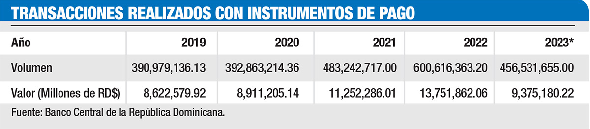 Otro ejemplo son las transferencias de fondos. Datos del BCRD muestran que el volumen incrementó casi siete veces su cantidad anterior, al pasar de 43,911 en todo el 2022, a 300,230 en los primeros ocho meses de 2023. El valor de esas transacciones, por su parte, aumentó en más de 1000%, al pasar de RD$62 millones a RD$701 millones.