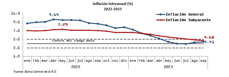 En otro orden, la inversión extranjera directa alcanzó US$3,369.5 millones en enero-septiembre, para un crecimiento interanual de 3.9 %. Este flujo de recursos, destinados en su mayoría a energía, turismo y comercio, muestran una vez más la gran confianza de los inversionistas extranjeros en el país. Para el cierre de 2023 se proyecta un flujo de inversión extranjera directa que estaría superando los US$4,300 millones, que unido a los US$10,000 millones que se esperaría ingresen por concepto de remesas, ambos rubros estarían contribuyendo al incremento de la demanda interna, es decir el consumo y la inversión.