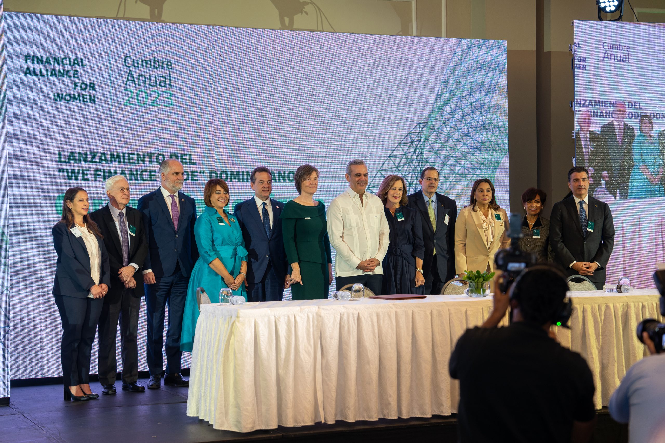 El presidente Luis Abinader oficializó la firma del acuerdo en compañía de altos funcionarios gubernamentales y líderes del ecosistema financiero nacional, entre ellos: Víctor Bisonó, ministro de Industria y Comercio; Mayra Jiménez, ministra de la Mujer; Clarissa de la Rocha de Torres, gobernadora en funciones del Banco Central; Alejandro Fernández W., superintendente de Bancos; Rosanna Ruíz, presidenta de la Asociación de Bancos Múltiples (ABA); Inés Murray, CEO de la Financial Alliance for Women, y Steven Puig, presidente del Banco BHD.