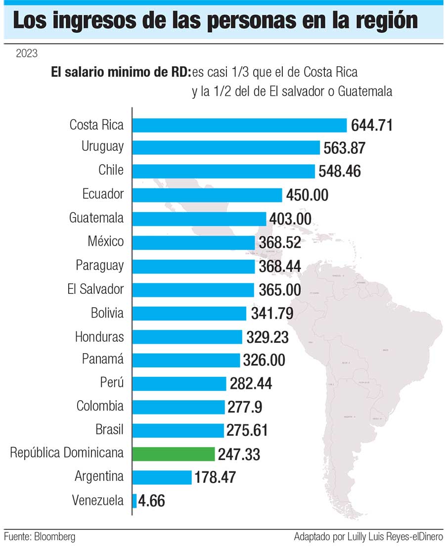 Aquí podría estar, según De Ramón, el gran misterio de por qué la gente no siente el bienestar. De hecho, afirma, no tiene cómo sentirlo ni potenciarse como ser humano para recibirlo. Y cuando se compara el salario mínimo en todos los países de América Latina, observa que en el caso de República Dominicana es muy inferior a todos los países.