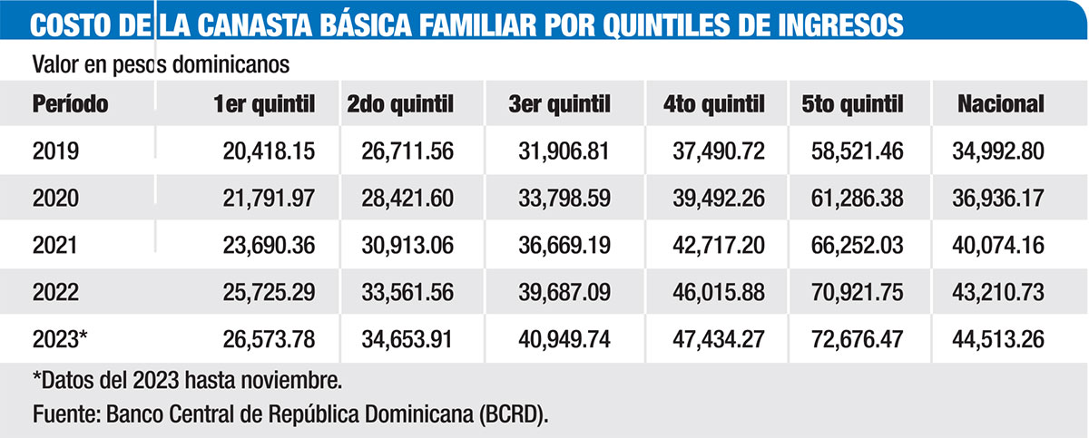 Según datos del BC, a noviembre 2023 la canasta familiar del primer quintil, es decir, de los dominicanos más pobres, registró un valor de RD$26,573. En cambio, el quinto quintil con los de mayores ingresos, se ubicó en RD$76,676 y el promedio nacional en RD$44,513. “Este Gobierno no ha sumado en nada, si es por ellos el país se va a joder cada día más”, afirmó la estilista en belleza, refiriéndose al desempeño económico de la actual gestión gobernativa.