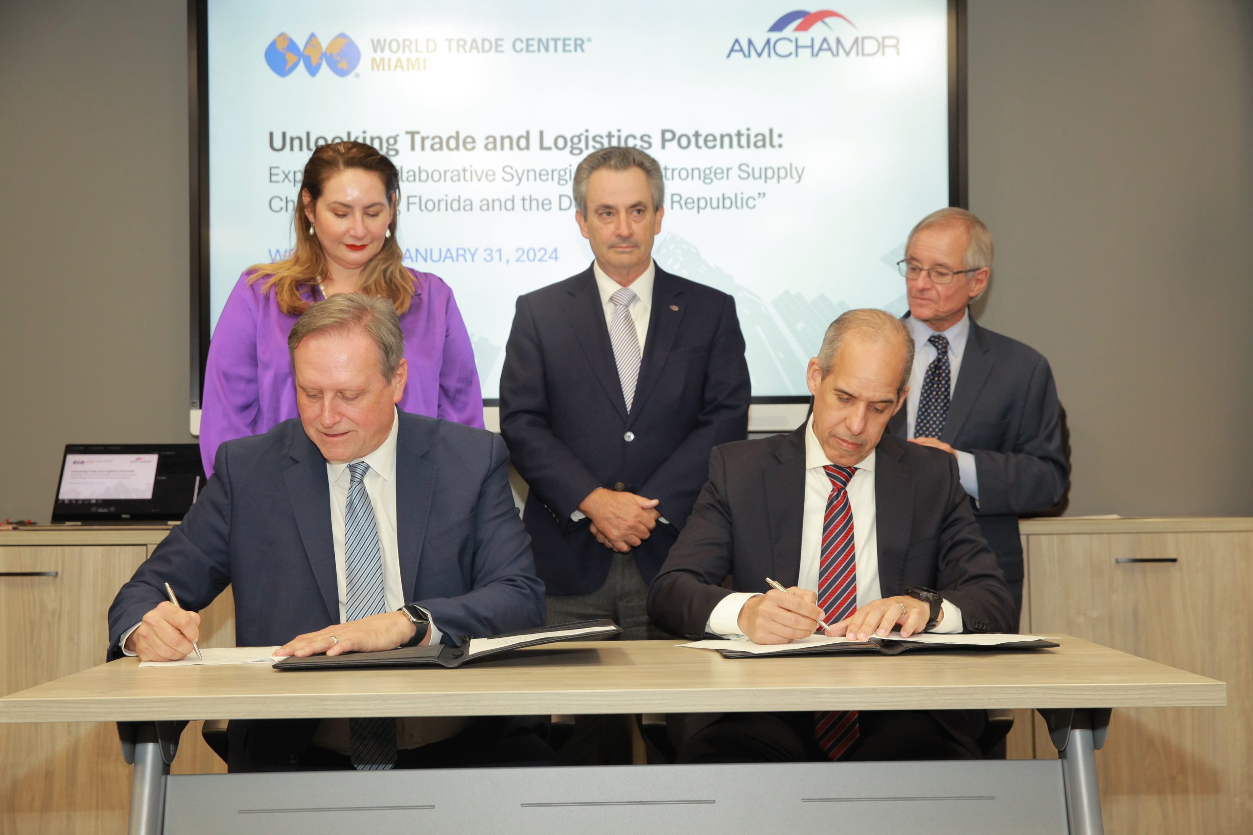 La Cámara Americana de Comercio de la República Dominicana (AMCHAMDR) y el World Trade Center Miami (WTCM) firmaron un memorando de entendimiento (MOU por sus siglas en inglés), con el objetivo de fortalecer las relaciones comerciales entre Florida y República Dominicana.