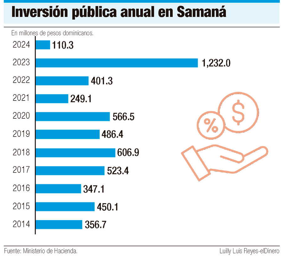 El Estado “ha puesto de su parte”, con la construcción de infraestructuras que buscan el desarrollo de Samaná. En 2023 se destinó la mayor cantidad de dinero en la última década, alcanzando RD$1,232 millones. Se trata de un monto que triplica el promedio invertido entre 2014 y 2022.