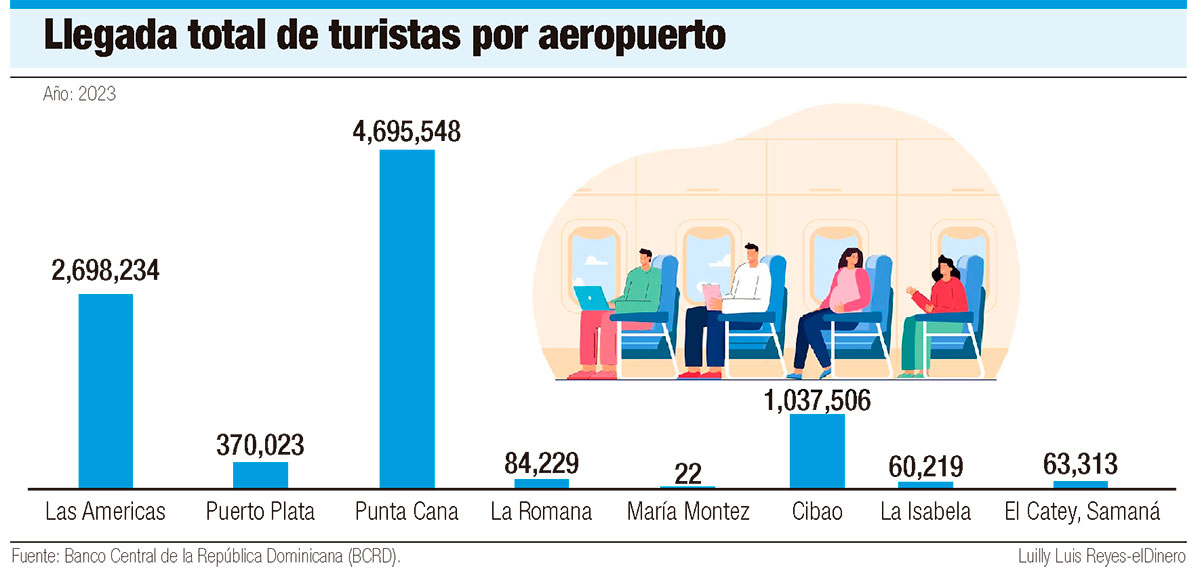 La cifra apenas se posicionó por arriba de las llegadas del aeropuerto internacional Dr. Joaquín Balaguer, (La Isabela o El Higüero), en Santo Domingo, donde se registraron 60,219 viajeros y de los 22 que se reportaron en el aeropuerto María Montez, en Barahona.